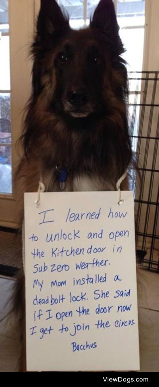 Dead-bolting Straight for the Exit I learned how to unlock and open the kitchen door in sub zero weather. My mom installed a deadbolt lock. She said if I open the door now I get to join the circus. Bacchus.