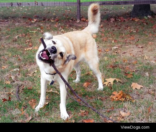 speckledbellies: Briar Hound tries to scare me by breaking a stick with his super strong and sharp teeth! @handsomedogs