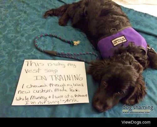 Service Dog In Training This is Aria. She’s a 5 month old service dog being trained by her mom Karin who uses a wheelchair.