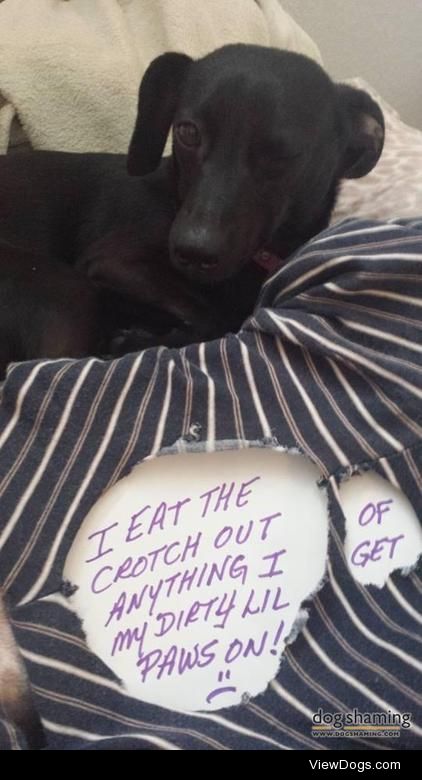 Wink, wink, nudge, nudge This is Gigi, my 3 yr-old Chiweenie. A little “commando” in her own right, apparently she believes crotches in apparel are cruel confinement.