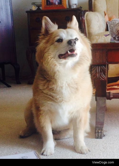 My dog Amber!! She wanted a treat in this picture. She was so happy when she got it.
